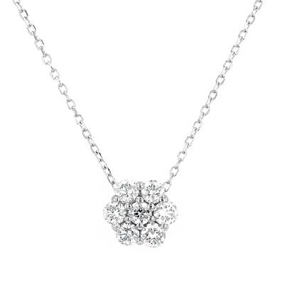 14 karat white gold diamond pendant with 1/3 carat total weight of round brilliant diamonds.