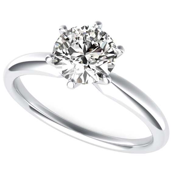 This 14 karat white gold diamond solitaire engagement ring features one 5/8 carat round brilliant diamond.