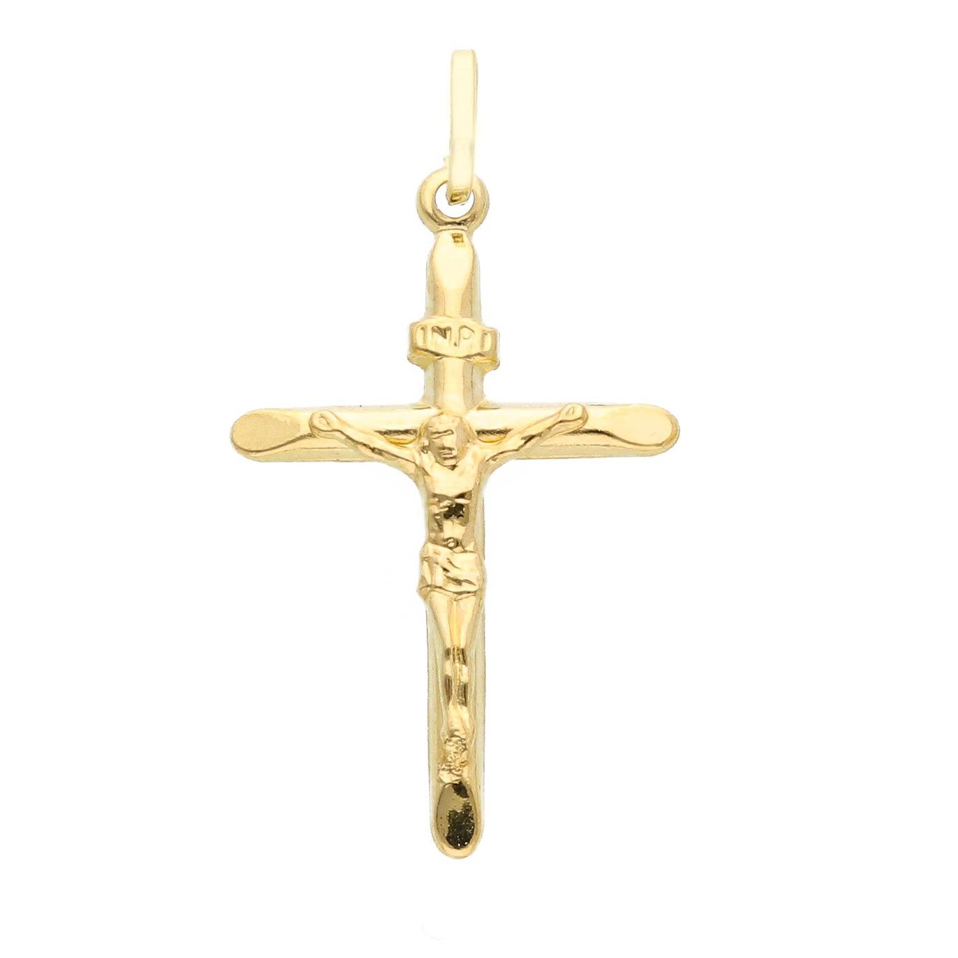 14 karat yellow gold crucifix pendant. MADE IN ITALY