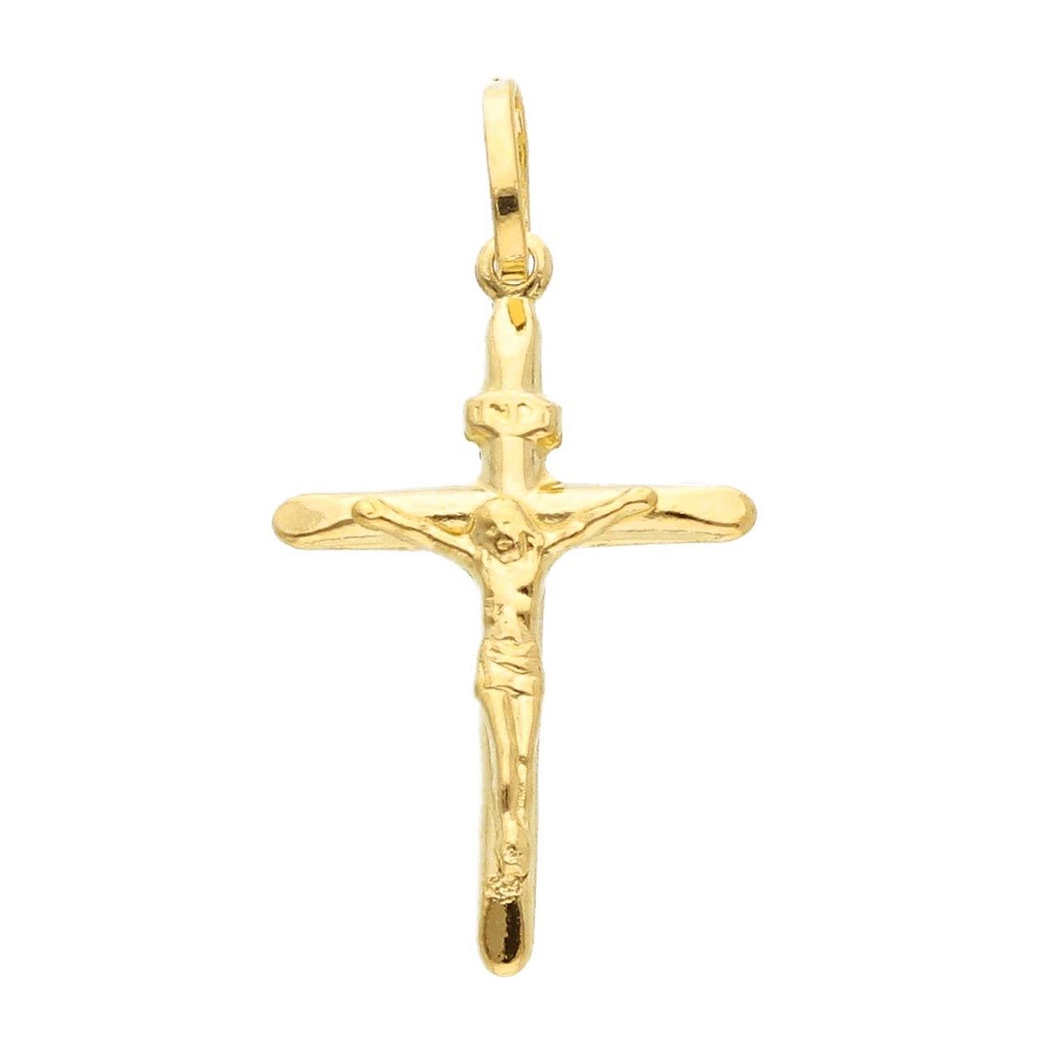 14 karat yellow gold crucifix pendant. MADE IN ITALY