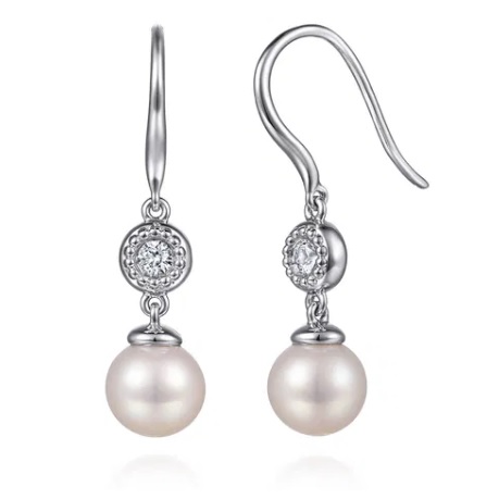 Sterling silver pearl earrings with white sapphires by Gabriel & Co.