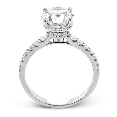 This 18 karat white gold double hidden halo mounting by Simon G. features 3/8 carat total weight of round brilliant diamonds. Center diamond is sold separately.